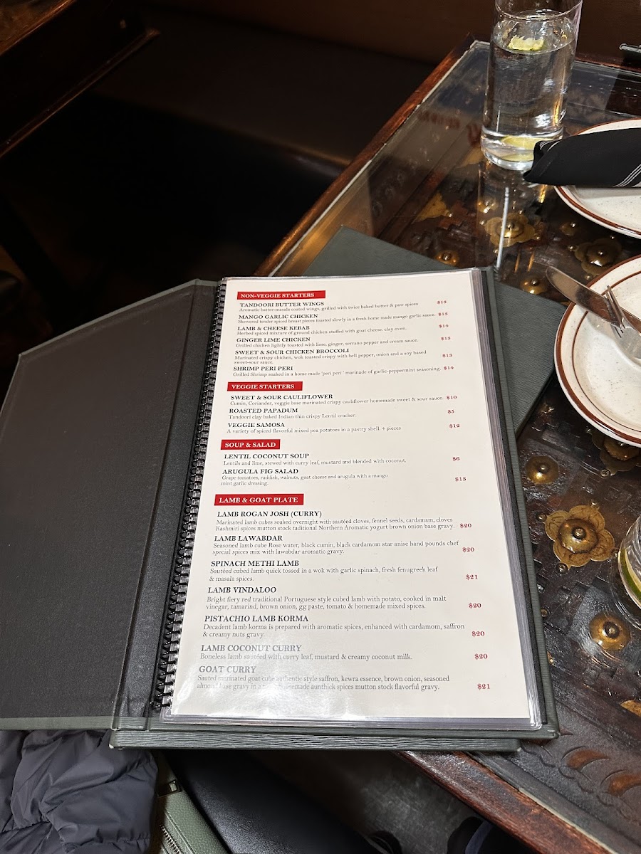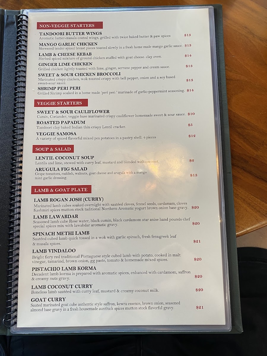 Sautéed cubed lamb quick tossed in a wok with garlic spinach, fresh fenugreek leaf & masala spices
